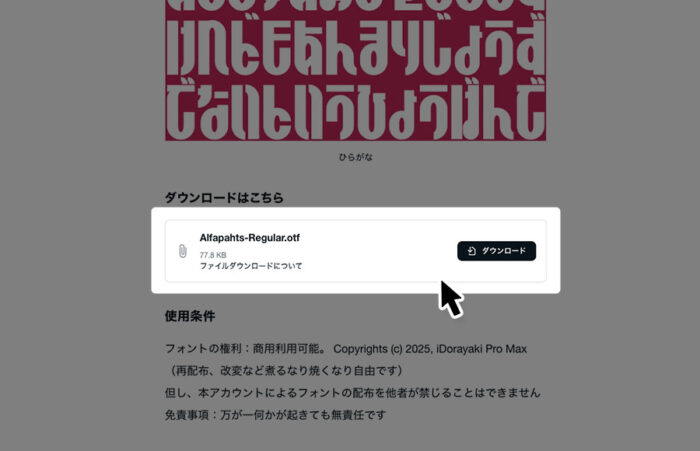 ※フォントの使用用途によっては「使用不可」「商用不可」の場合があります。必ず配布サイトで「利用規約・使用許諾範囲」をご確認ください。