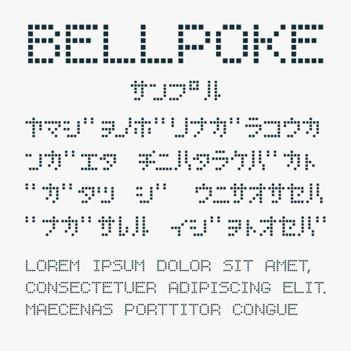 BELLPOKEフォントは、ポケベルの文字表示を思わせるドット表現がとても可愛いなドットフォントです。