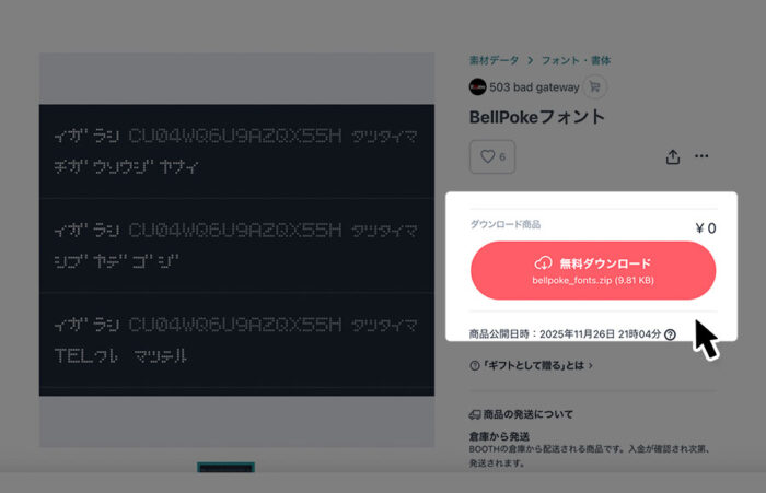 | 配布サイト/作者 | 503 bad gateway – BOOTH |