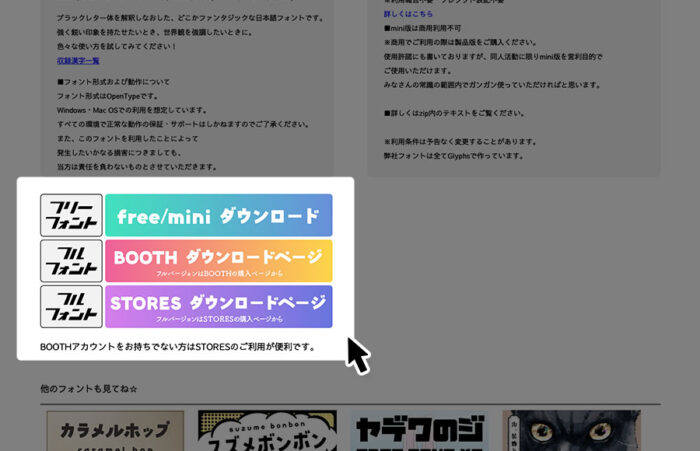 ※フォントの使用用途によっては「使用不可」「商用不可」の場合があります。必ず配布サイトで「利用規約・使用許諾範囲」をご確認ください。