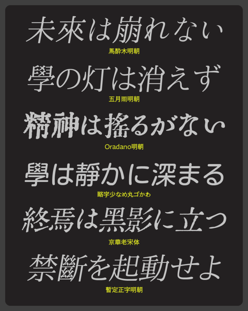 そこで今回は、古典的な表現に適した明朝体など、歴史的な雰囲気をまとうデザインフォントなど、「旧字が使える」「旧字体が美しく表現できる」ことに重点を置いた日本語フリーフォントをピックアップしました。