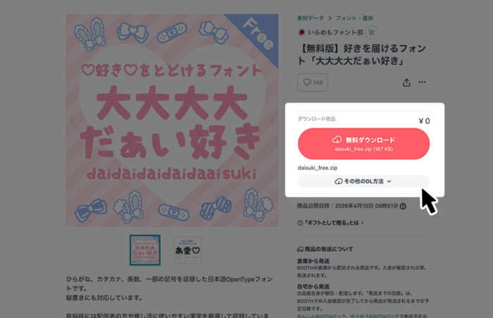 | 配布サイト/作者 | いらめもフォント部 – BOOTH |