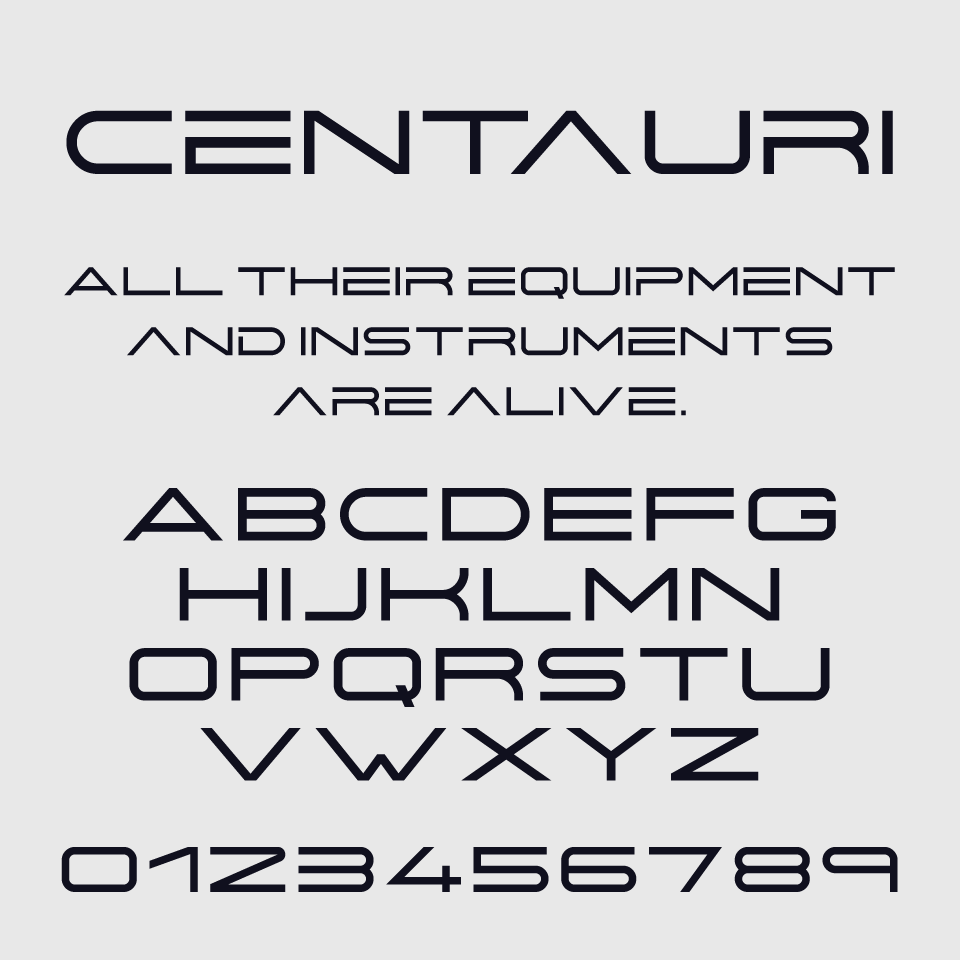Centauriフォントは、近未来感を前面に打ち出したシャープなデザインのサンセリフ体です。