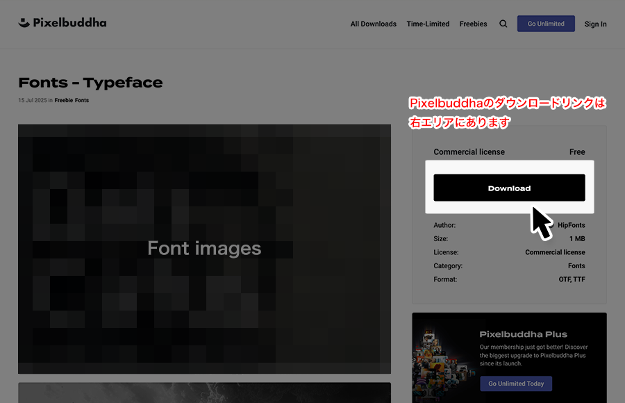 Pixelbuddhaのダウンロードエリアはまたは右サイドバーの「Download」から可能です。