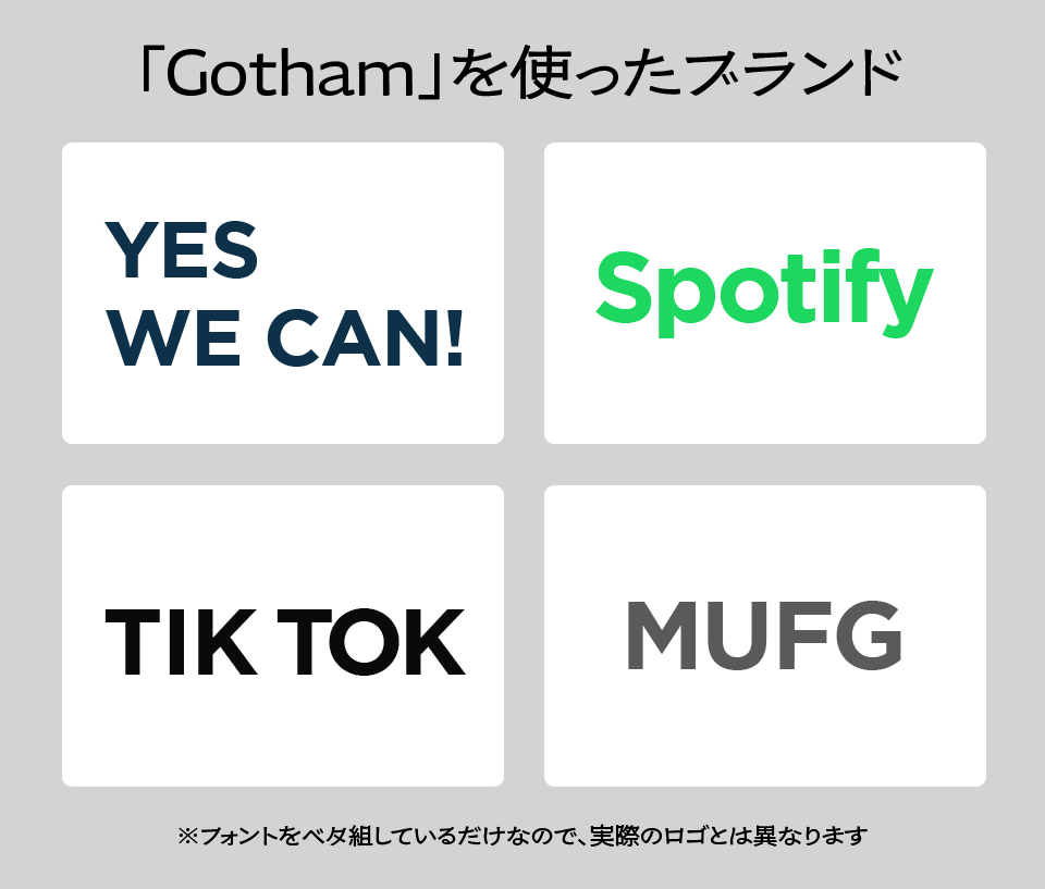 企業や団体が「信頼感・安定感・モダンさ」を表現したいとき、Gothamは非常に頼れるフォントとして使われてきました。日本の銀行のロゴタイプに使われているのもビックリですよね。