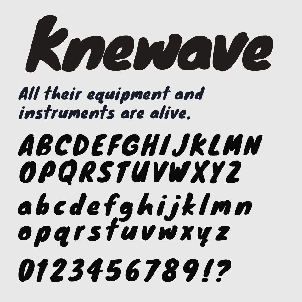 Knewaveフォントは、インクがにじんだようなタッチが魅力の手書き風デザインフォントです。