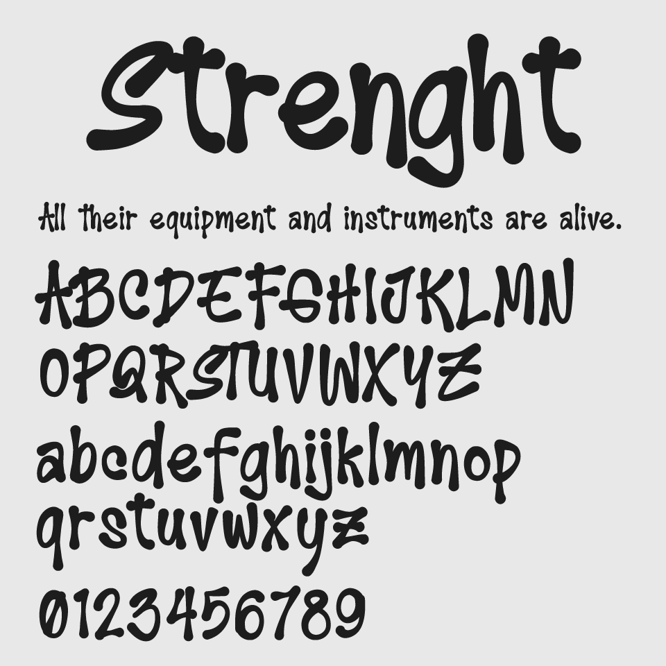 Strenght to Strenghtフォントは、手書きの温もりとゆるさが漂う親しみやすいグラフィティな手書きフォントです。